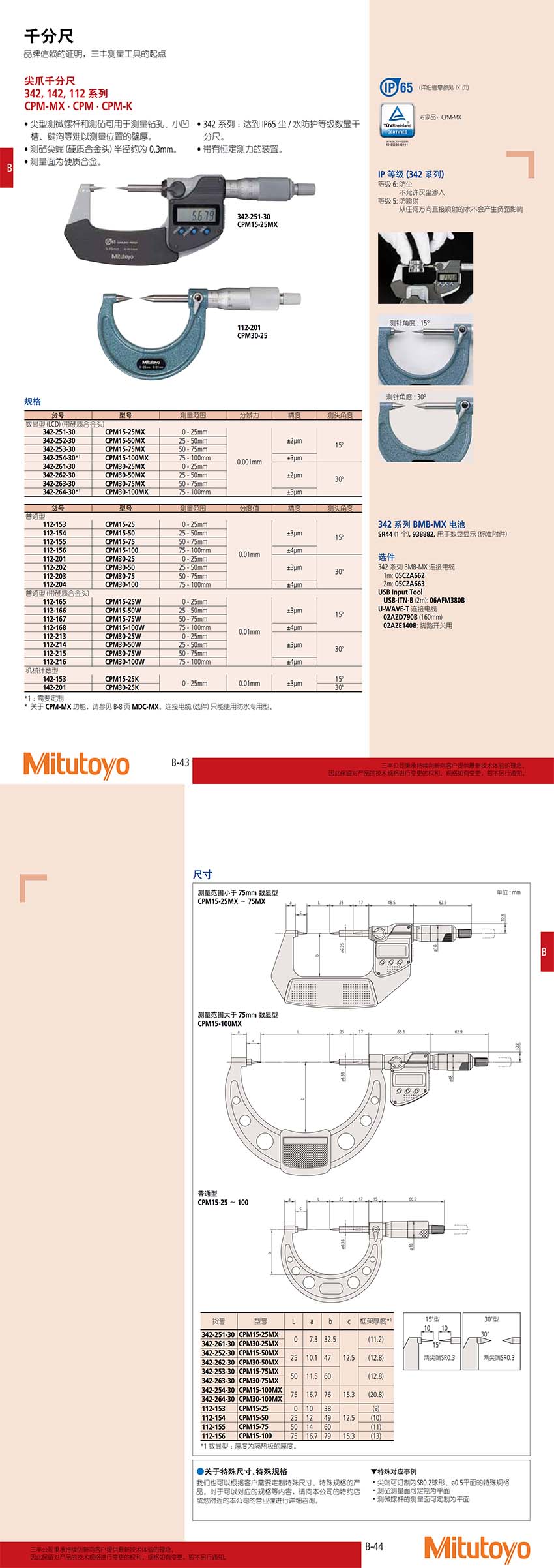 尖爪千分尺0 - 25mm342-261-30規(guī)格參數(shù)Specs