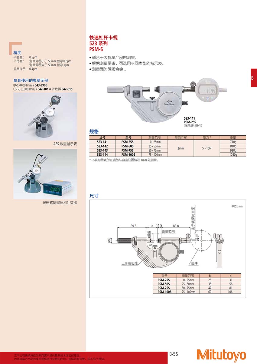 | 523-142 | PSM-50S | 25 - 50mm | 2mm | 5 - 10N | 810g |