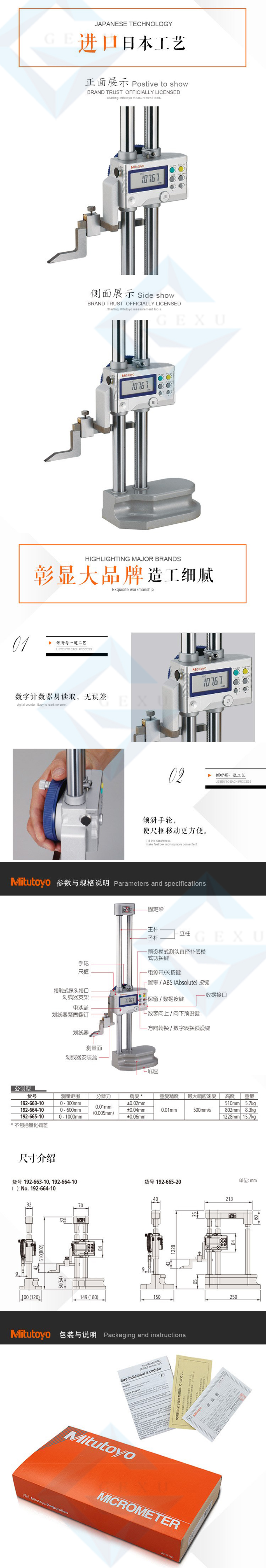 數(shù)顯高度卡尺0--300mm 192-663-10包裝清單Detail